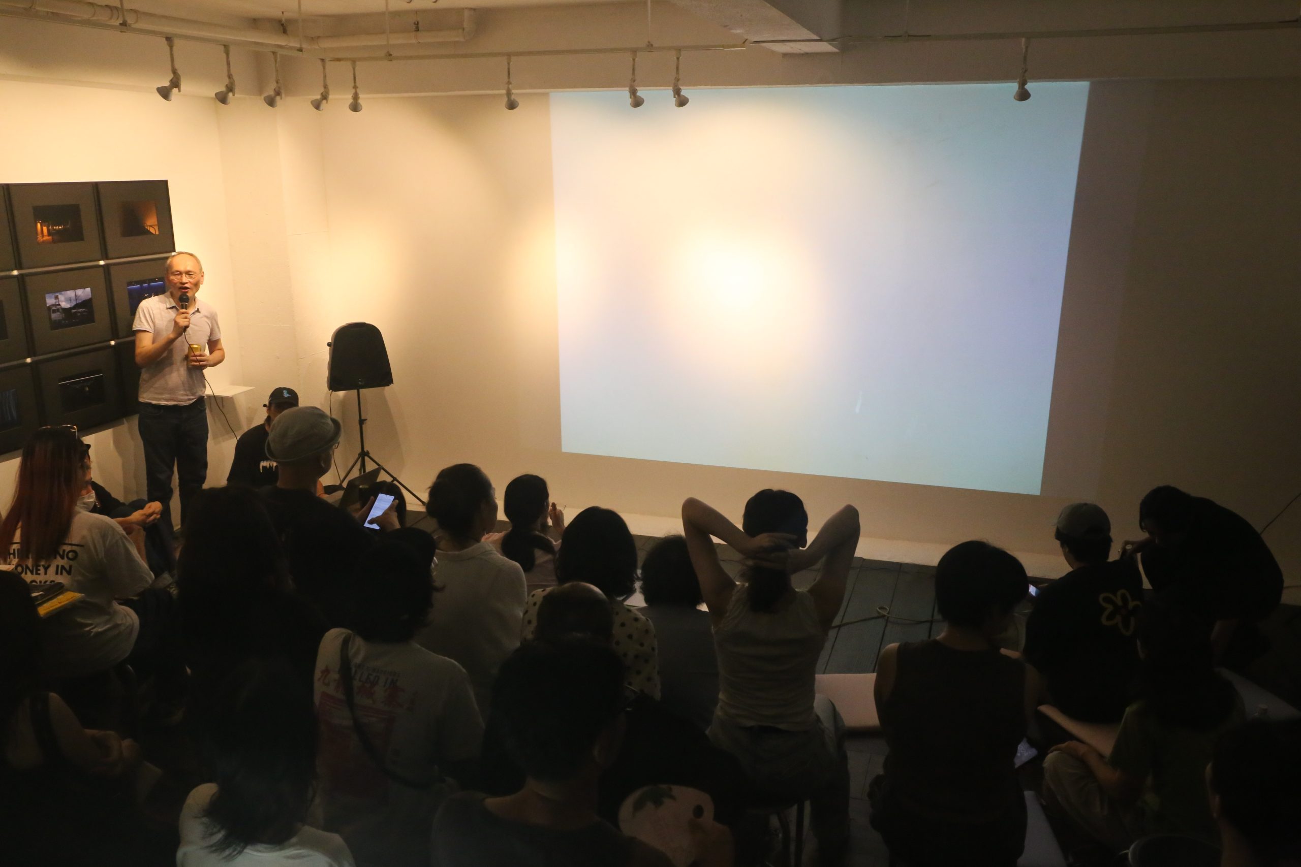 筆者が参加した8月23日(土)の上映会は、池谷氏による挨拶で幕を開けた。全体上映時間は3時間の予定で、1時間ごとに休憩が設けられること、それぞれのスライドショーは10分程度であり、前後に作家による解説が行われることが説明された。