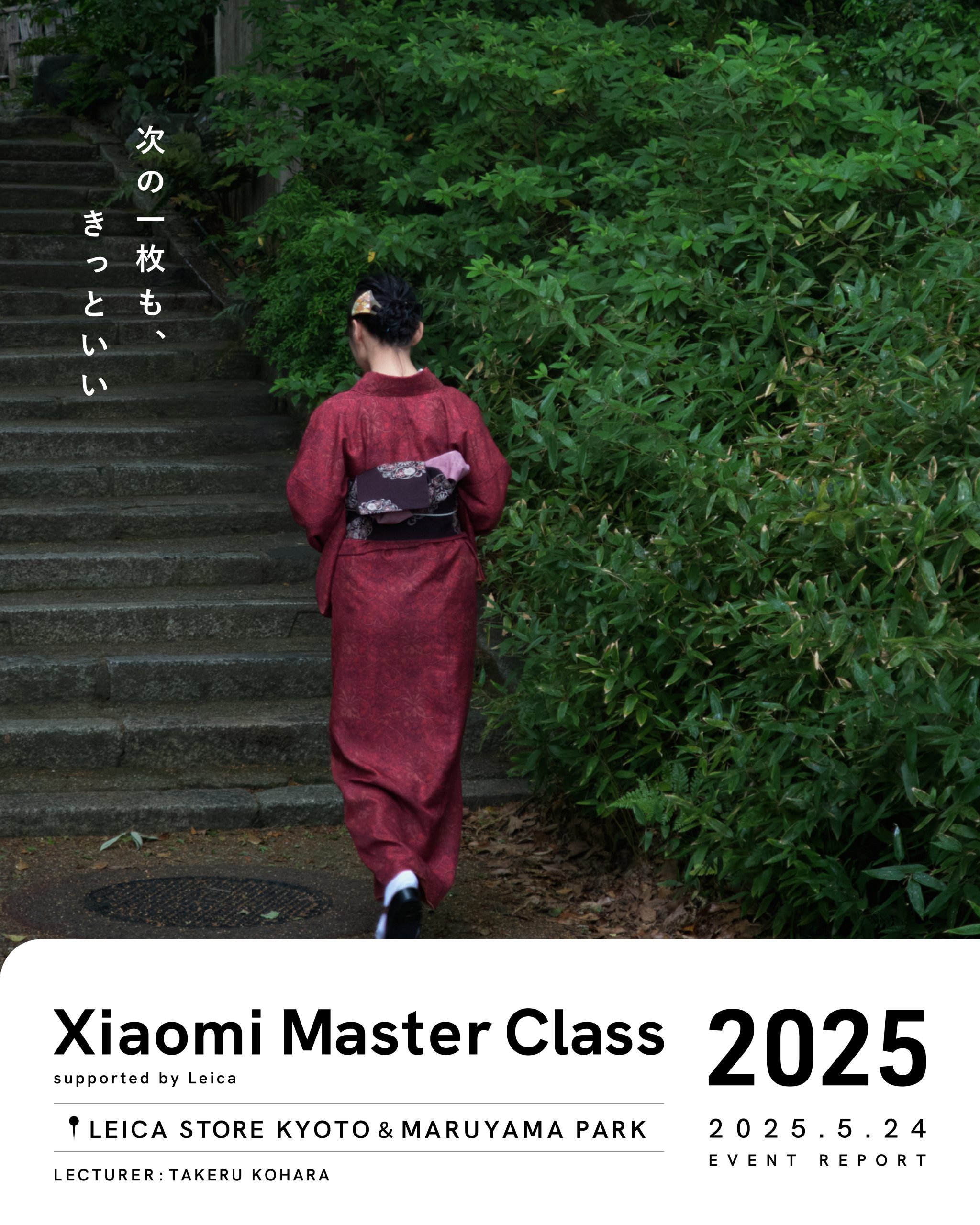 購入者向けの撮影体験イベントであるマスターズギャザリングは、ライカ京都店を活用しての撮影体験会を実施。近隣公園での撮影企画プロデュースからディレクションまで行っています。講師には、発表会でのSNSコマーシャル及び作品展示を担当したコハラタケル氏をお迎えし、全2回のワークショップを実現。